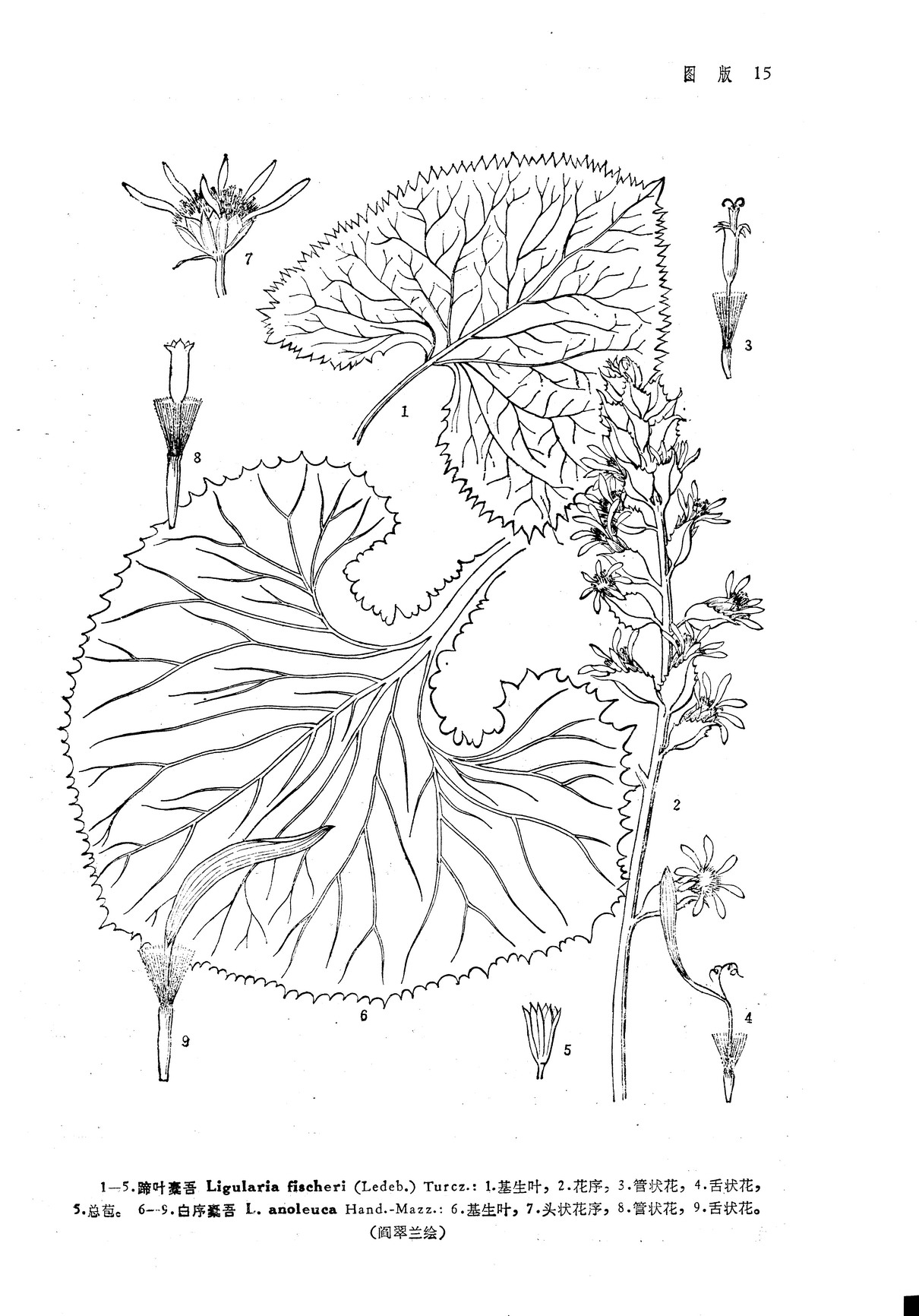 3.西藏居群:植株大小、总苞宽窄与北方居群近似,但苞片狭披针形至线形,与上述两个居群都不同。产我国西藏东南部。分布于尼泊尔、锡金、不丹。这一居群相当于Senecio ligularia Hook. f. 及 Ligularia sibirica var. longibracteata Kitam. et var. racemosa (DC.) Kitam.