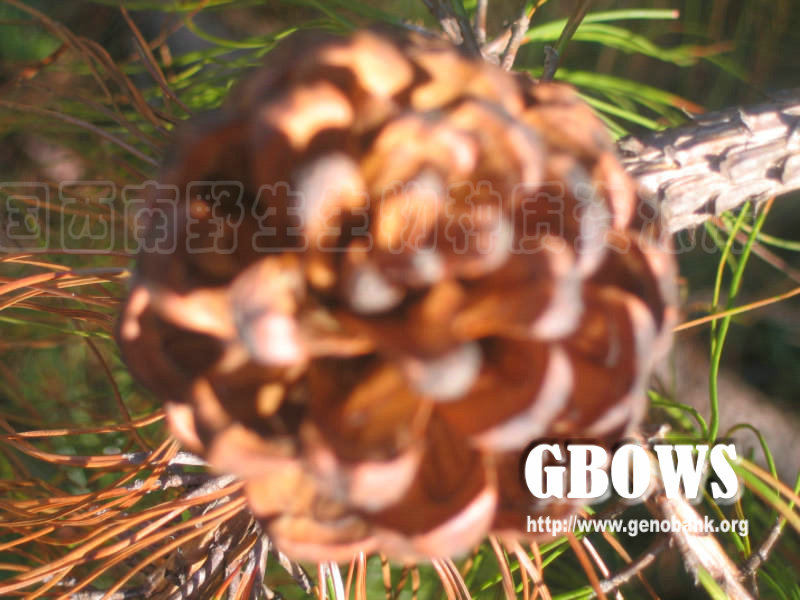 乔木,高达30米,胸径1米;树皮褐灰色,深纵裂,裂片厚或裂成不规则的鳞状块片脱落;枝开展,稍下垂;一年生枝粗壮,淡红褐色,无毛,二、三年生枝上苞片状的鳞叶脱落露出红褐色内皮;冬芽圆锥状卵圆形,粗大,红褐色,无树脂,芽鳞披针形,先端渐尖,散开或部分反曲,边缘有白色丝状毛齿。针叶通常3针一束,稀2针一束,常在枝上宿存三年,长10-30厘米,径约1.2毫米,先端尖,背腹面均有气孔线,边缘有细锯齿;横切面扇状三角形或半圆形,二型皮下层细胞,第一层细胞连续排列,其下有散生细胞,树脂道约4-5个,中生与边生并存(中生者通常位于角部);叶鞘宿存。雄球花圆柱状,长约1.5厘米,生于新枝下部的苞腋内,聚集成穗状. 球果成熟前绿色,熟时褐色或栗褐色,圆锥状卵圆形,长5-11厘米,有短梗,长约5毫米;中部种鳞矩圆状椭圆形,长约3厘米,宽约1.5厘米,鳞盾通常肥厚、隆起,稀反曲,有横脊,鳞脐微凹或微隆起,有短刺;种子褐色,近卵圆形或倒卵形,微扁,长4-5毫米,连翅长1.6-1.9厘米;子叶6-8枚,长2.8-3.8厘米,边缘具疏毛状细锯齿;初生叶窄条形,长2.5-5厘米,较柔软。花期4-5月,球果第二年10月成熟。