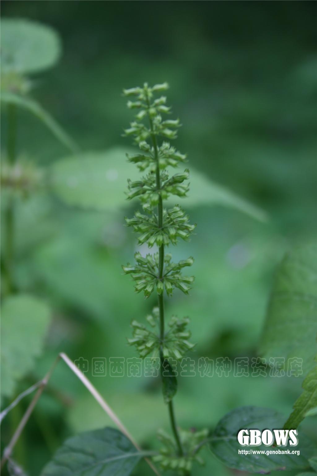 纤细草本。茎多数,自匍匐茎生出,柔弱,上升,不分枝或基部具分枝,高8-30厘米,径约1.5毫米,四稜形,具槽,被倒向的短柔毛。最下部的叶圆卵形,细小,长约1厘米,宽0.8-0.9厘米,先端钝,基部圆形,边缘具疏圆齿,较下部或全部叶均为卵形,较大,长1.2-3.4厘米,宽1-2.4厘米,先端钝,基部圆形或楔形,边缘具疏牙齿或圆齿状锯齿,薄纸质,上面榄绿色,近无毛,下面较淡,脉上被疏短硬毛,侧脉2-3对,与中肋两面微隆起但下面明显呈白绿色,叶柄长0.3-1.8厘米,腹凹背凸,基部常染紫红色,密被短柔毛;上部叶及苞叶卵状披针形,先端锐尖,边缘具锯齿。轮伞花序分离,或密集于茎端成短总状花序,疏花;苞片针状,远较花梗为短;花梗长约1-3毫米,被微柔毛。花萼管状,基部圆形,花时长约3毫米,果时下倾,基部一边膨胀,长约5毫米,13脉,外面沿脉上被短硬毛,其余部分被微柔毛或几无毛,内面喉部被稀疏小疏柔毛,上唇3齿,短,三角形,果时外反,下唇2齿,略长,先端钻状,平伸,齿均被睫毛。花冠白至紫红色,超过花萼长约1/2倍,外面被微柔毛,内面在喉部被微柔毛,冠筒向上渐扩大,冠檐二唇形,上唇直伸,先端微缺,下唇3裂,中裂片较大。雄蕊4,前对能育,与上唇等齐,花药2室,室略叉开。花柱先端略增粗,2浅裂,前裂片扁平,披针形,后裂片消失。花盘平顶。子房无毛。小坚果卵球形,褐色,光滑。花期6-8月,果期8-10月。