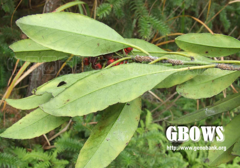 常绿大乔木,高达20米,胸径60厘米,全体无毛;树皮灰黑色;分枝粗壮,具纵棱及槽,黄褐色或褐色,光滑,具明显隆起、阔三角形或半圆形的叶痕。叶生于1-3年生枝上,叶片厚革质,长圆形或卵状长圆形,长8-19(-28)厘米,宽4.5-7.5 (-9)厘米,先端钝或短渐尖,基部圆形或阔楔形,边缘具疏锯齿,齿尖黑色,叶面深绿色,具光泽,背面淡绿色,中脉在叶面凹陷,在背面隆起,侧脉每边12-17条,在叶面明显,背面不明显;叶柄粗壮,近圆柱形,长1.5-2.5厘米,直径约3毫米,上面微凹,背面具皱纹;托叶极小,宽三角形,急尖。由聚伞花序组成的假圆锥花序生于二年生枝的叶腋内,无总梗;主轴长1-2厘米,基部具宿存的圆形、覆瓦状排列的芽鳞,内面的膜质,较大。花淡黄绿色,4基数。雄花:假圆锥花序的每个分枝具3-9花,呈聚伞花序状,总花梗长2毫米;苞片卵形或披针形,长5-7毫米,宽3-5毫米;花梗长6-8毫米,小苞片1-2枚,三角形;花萼近杯状,直径约3.5毫米,4浅裂,裂片圆形;花冠辐状,直径约9毫米,花瓣卵状长圆形,长约3.5毫米,宽约2.5毫米,基部合生;雄蕊与花瓣等长,花药卵状长圆形,长为花丝的2倍;不育子房近球形,柱头稍4裂。雌花:花序的每个分枝具1-3花,总花梗长约2毫米,单花之花梗长5-8毫米,具1-2枚小苞片;花萼盘状,直径约3毫米;花冠直立,直径约5毫米;花瓣4,卵形,长约3毫米,宽约2毫米;退化雄蕊长为花瓣的1/3,败育花药小,卵形;子房卵球形,直径约2毫米,柱头盘状,4裂。果球形,直径约7毫米,成熟时红色,宿存柱头薄盘状,基部宿存花萼盘状,伸展,外果皮厚,平滑。分核4,轮廓长圆状椭圆形,长约5毫米,宽约2.5毫米,具不规则的皱纹和尘穴,背面具明显的纵脊,内果皮骨质。花期4月,果期9-10月。
