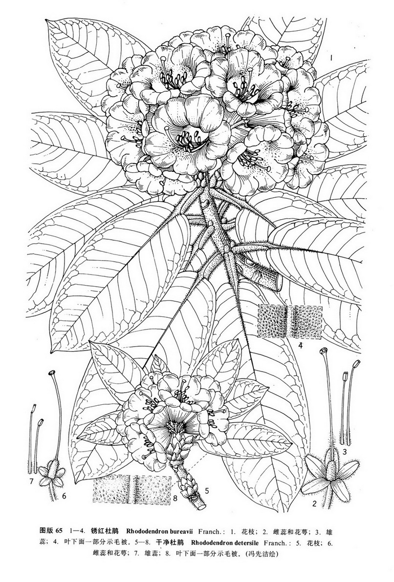 Rhododendron detersile Franch. in Journ. de. Bot. 12: 260. 1898; Hemsl, et Wils. in Kew Bull. Misc. Inform. 1910: 107. 1910; Millaris, Rhodod. 154. 1917; Wils. in Journ. Arn. Arb. 5: 90. 1924; Tagg in Stevenson, Spec. Rhodod. 641. 1930; Cullen et Chamb. in Not. Bot. Gard. Edinb. 36: 119. 1978; Chamb. in Not. Bot. Gard. Edinb. 39:337. 1982; 秦岭植物志1 (4): 18, 图20. 1983.