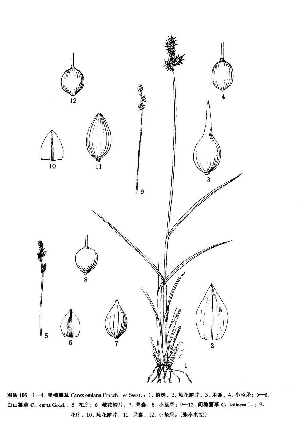 Egorova(1966) 采用C. canescens L.名称,将C. cinerea Poll. 作为该种的异名。崔乃然 (1982) 在新疆植物检索表中报导C. cinerea Poll. 在阿尔泰山(青河、大桥林场)有分布,由于我们没有看到该种的文献和标本,附志于此,留待核实。而且,在新疆植物检索表中还报导布尔津产C. brunnescens (Pers.) Poir., 该种与C. curta Good.十分接近,仅果囊背面喙部有1条较长的裂缝。我们检查了产于布尔津附近的福海标本,仍宜属于C. curta Good., 但由于我们所见标本不多,暂不作为错误鉴定,也附志于此,待今后进一步考证。