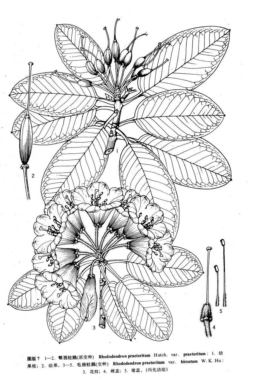 本种与山光杜鹃 R. oreodoxa Franch. 相近,但花冠仅有5枚裂片,花梗无腺体,易于区别。