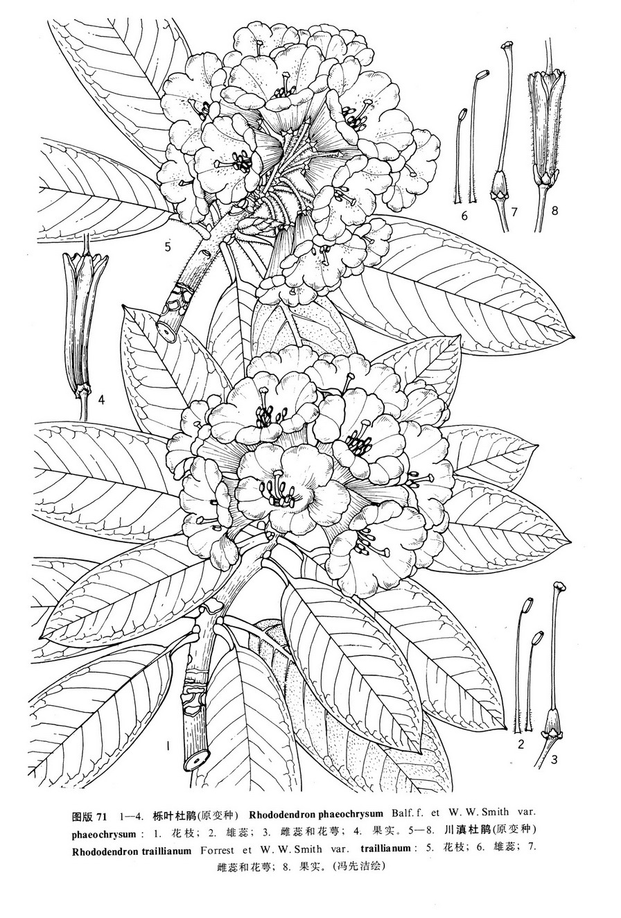 本种与宽钟杜鹃 R. beesianum Diels相近,但本种的叶较短、较窄,通常长圆形,长7-14厘米,宽2.5-5.5厘米,下面毛被黄棕色或金棕色,毡毛状,多少粘结,花冠漏斗状钟形,花萼和子房无毛,易于区别。