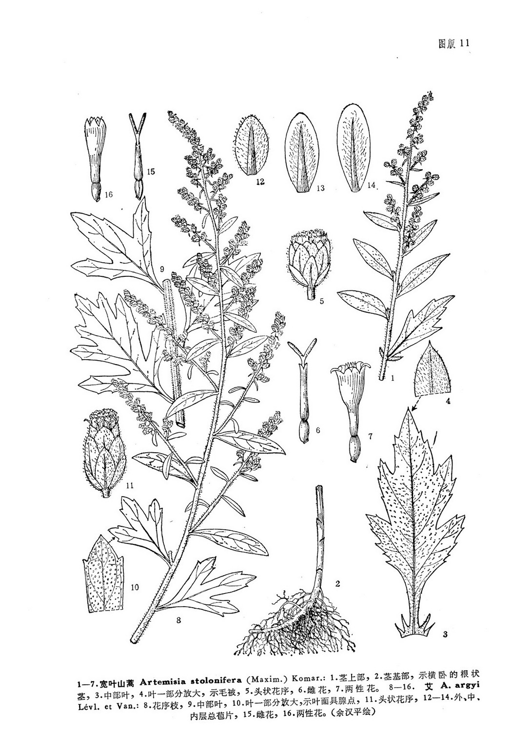 Artemisia stolonifera (Maxim.) Komar. Fl. Mansh. 3: 676. 1907; Nakai, Fl. Kor. 2: 29. 1911, in Bot. Mag. Tokyo 34: 53. 1920, incl. var. laciniata Nakai et Fl. Sylv. Kor. 14: 102. 1923; Komar. et Alis. Key Pl. Far East. Reg. USSR 2: 1043, Tab. 310. 1932; Kitam. in Act. Phytotax. Geobot. 2: 178. 1933, 12: 151. 1943, in Trans. Sapp. Nat. Hist. Soc. 16: 62. 1940 et in Mem. Coll. Sci. Kyoto Univ. Ser. 8. 15(3): 421. 1940; Ling in Contr. Inst. Bot. Nat. Peip. 2(10): 521. 1934; Kitag. Lineam. Fl. Mansh.