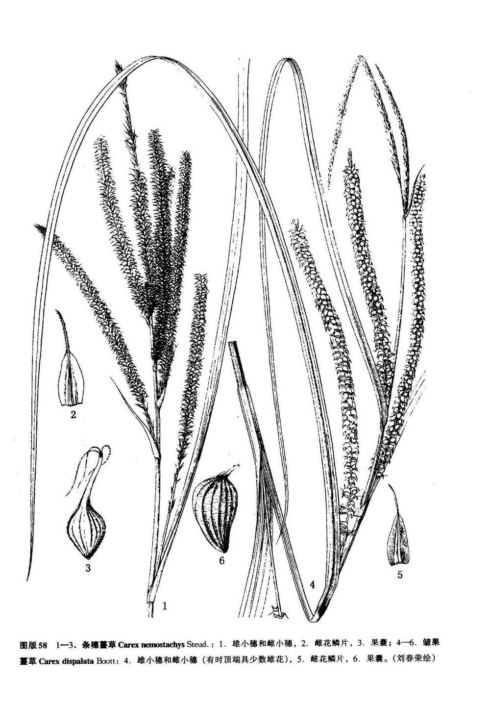 Carex dispalata Boott ex A. Gray, Narr. Exped. Perry 2: 325, 1856-1857 et Illustr. Carex 4: 205, 1867; Kom., Fl. Mansh. 1: 391, 1901; C. B. Clarke in Journ. Linn. Soc. Bot. 36: 283, 1903 ex cl. syn. C. marginaria Franch. ; Kukenth. in Engl., Pflanzenr. Heft 38 (IV, 20): 616, 1909; Akiyama, Consp. Caris. Jap. 190, 1932, incl. var.; Kom, et Alisov., Key Pl. Far East. Reg. USSR 1: 315, t. 95 fig. sinistr., 1931; Ohwi, Cyper. Japon. 1: 480, 1936; Akiyama, Caric. Far East. Reg. As. 148, 1955, incl. var., t. 139, A-F; 内蒙古植物志8: 105, 1985; S. W. Su in Journ. Anhui Univ. Nat. Sci. Edi. 3: 78, 1988; ——Carex acutiformis auct. non Ehrh., Franch. in Nouv. Arch. Mus. Paris 3 ser, 10: 83, 1898; C. B. Clarke in l. c. 36: 269, 1903.——Carex pollens C. B. Clarke 1. c. 36: 305, 1904, incl. var. angustior C. B. Clarke——Carex dispalata Boot var. costata Kukenth. l. c. Heft 38 (IV: 20): 617, 1909.