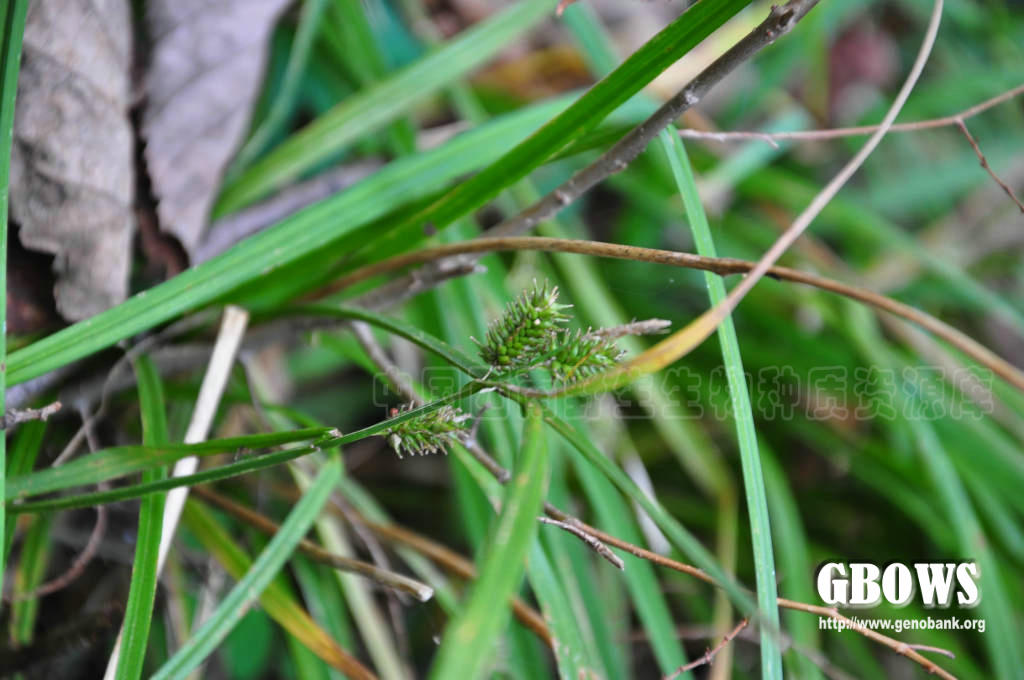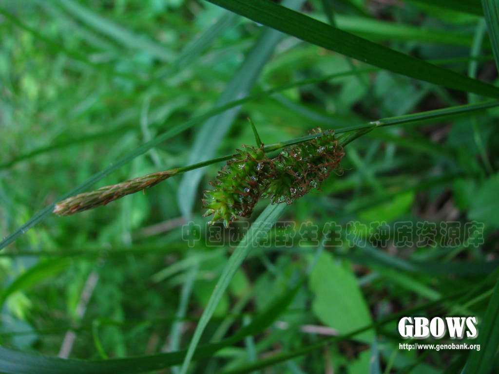 根状茎短,具细长地下匍匐茎。秆疏丛生,高20-40厘米,较细,扁锐三棱形,上部棱上稍粗糙,基部具少数淡褐色无叶片的鞘,鞘边缘常细裂成网状。叶上面的长于秆,基部的常短于秆,宽3-4毫米,稍坚挺,平张,具两条明显的侧脉,边缘粗糙;具鞘。苞片叶状,下面的长于小穗,上面的1-2个短于小穗,无鞘。小穗3-4个,间距较长,顶生小穗为雄小穗,雄小穗线形,长2-4厘米,具小穗柄;侧生的小穗为雌小穗,长圆状圆柱形或长圆形,长1.5-2.5厘米,密生多数花,下面的具短柄,上面的无柄或近无柄。雄花鳞片披针形,长约5毫米,顶端渐尖,膜质,苍白色,具3条脉,脉间为淡绿色;雌花鳞片狭卵形,长2.5-3毫米,顶端渐尖,膜质,苍白色或稍带淡褐色,具3条脉,脉间常呈淡绿色。果囊斜展,长于鳞片,椭圆状卵形或卵形,稍鼓胀三棱形,长4-4.5毫米,纸质,黄绿色或麦秆黄色,无毛,稍具光泽,脉不明显,基部急狭成宽楔形,顶端急缩成中等长的喙,喙口白色膜质,具两短齿。小坚果稍疏松地包于果囊中,椭圆形或倒卵状椭圆形,三棱形,长约2毫米,淡棕色;花柱基部稍增粗;柱头3个。花果期5-8月。