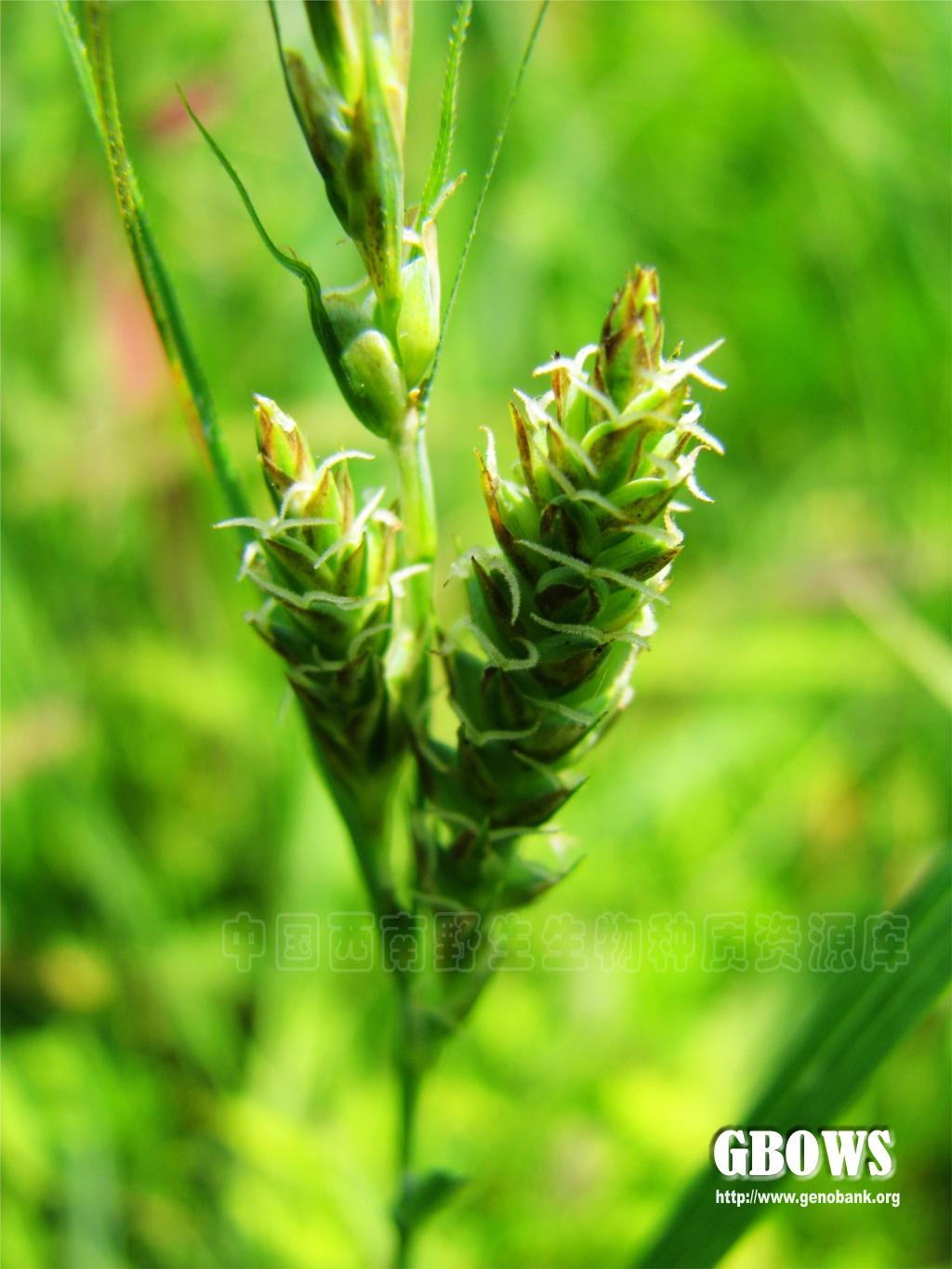 根状茎短,稀匍匐。秆丛生,高30-75厘米,锐三棱形,稍坚硬,基部具褐色红褐色无叶片的叶鞘,常细裂成纤维状。叶短于或近等长于秆,宽3-4毫米,平张或边缘反卷。苞片基部的叶状,长于花序,上部的刚毛状或鳞片状。小穗2-3个,顶生1个雄性,窄圆柱形,长2-4厘米,具柄;侧生小穗雌性,长圆状圆柱形或长圆形,长2.5-3厘米,宽8-9毫米;小穗柄纤细,基部的长1.5-2厘米,下垂,上部的柄较短,直立或下垂。雌花鳞片长圆状披针形,顶端渐尖,具短芒尖,长4-4.5毫米,红褐色,中间绿色,具3条脉,具锈色点线。果囊短于或等长于鳞片,宽倒卵形或宽卵形,双凸状,长约4-4.2毫米,宽3-3.5毫米,红褐色,密生乳头状突起和红棕色树脂状小突起,近无脉,基部宽楔形,具短柄,顶端急尖成短喙,喙口全缘。小坚果疏松地包于果囊中,扁圆形,褐色,长2-2.2毫米;花柱长,基部不膨大,柱头2个。花果期6-7月。