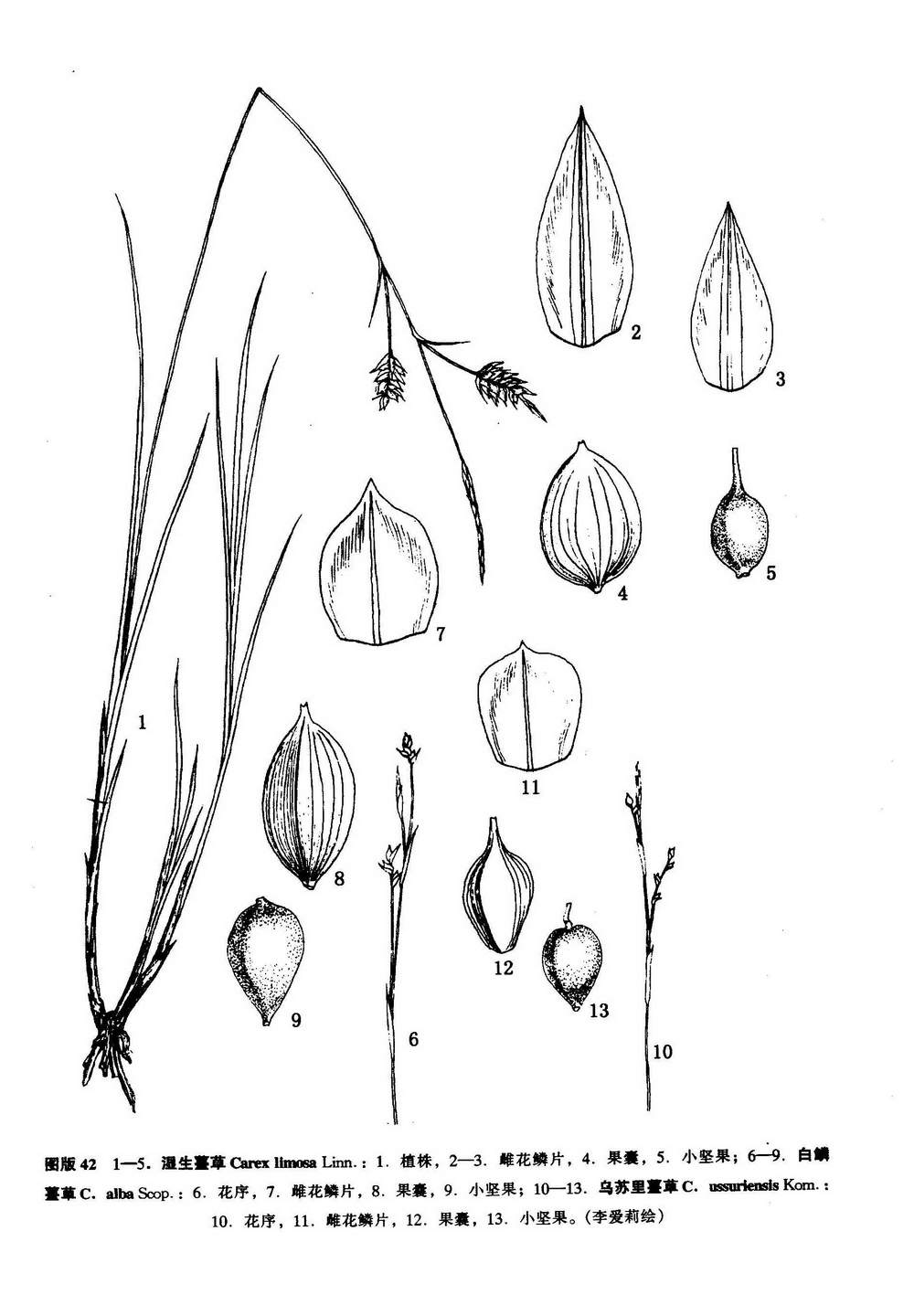 Carex ussuriensis Kom. in Acta Hort. Petrop. 18: 443, 1901. et Fl. Mansh. 1: 375, 1901; Kitag. in Bot. Mag. Tokyo 48, 1934; V. Krecz. in Kom., Fl. URSS3: 373, 1935; Ohwi, Cyper. Japon. 1: 393, 1936. ——Carex alba Scop. Subsp. ussuriensis (Kom) Kukenth. in Engl., Pflanzenr. Heft 38 (IV, 20): 500, 1909, etin Fedtsch., Prim. Flor. Sibir. 2: 140, 1912; Nakai, Fl. Kor. 2: 321, 1911.