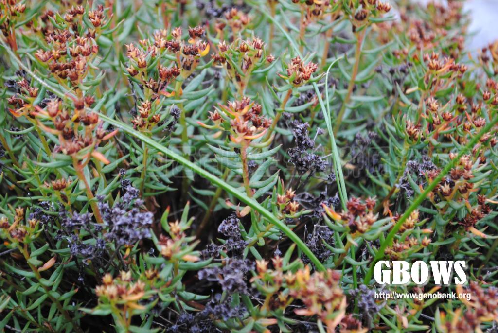 多年生草本。根颈粗壮,分枝,地上部分常被有残留的老枝。花茎聚生主轴顶端,长5-28厘米,直立或弯曲,不分枝。叶互生,线形至宽线形,长7-10毫米,宽1-2毫米,先端稍急尖,基部无柄,全缘。花序聚伞状,有4-7花;萼片5,线状披针形,长4毫米,宽0.7-0.9毫米,先端渐尖,基部宽;花瓣5,白或红色,披针状长圆形,直立,长8-11毫米,宽2.3-2.8毫米,先端渐尖,有较长的短尖,边缘平直,或多少呈流苏状;雄蕊10,较花瓣短,对萼片的长7毫米,对花瓣的长3毫米,着生花瓣基部上3毫米处;鳞片5,横长方形,长0.4毫米,宽0.8-1毫米,先端微缺;心皮5,卵状长圆形,直立,长6-9毫米,基部1-1.5毫米合生;种子长圆形,长1.2毫米,有微乳头状突起,有狭翅。花期6-7月,果期8月。