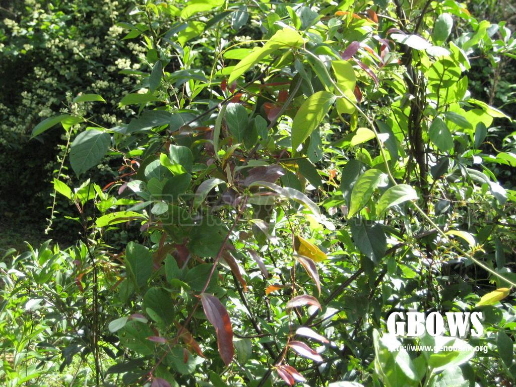 枝条光滑,无刺。叶薄革质,狭椭圆状披针形至狭卵状披针形,长6-12(15)厘米,