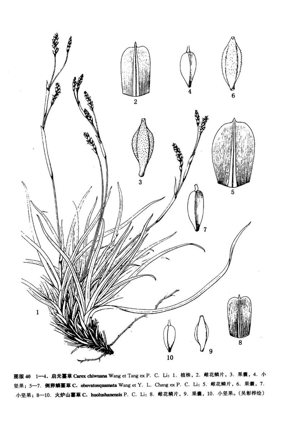 Carex chiwuana Wang et Tang ex P. C. Li in Acta Bot. Yunn. 12 (2): 143, fig. 9, 1990; 横断山区维管植物下册: 2377, 1994.