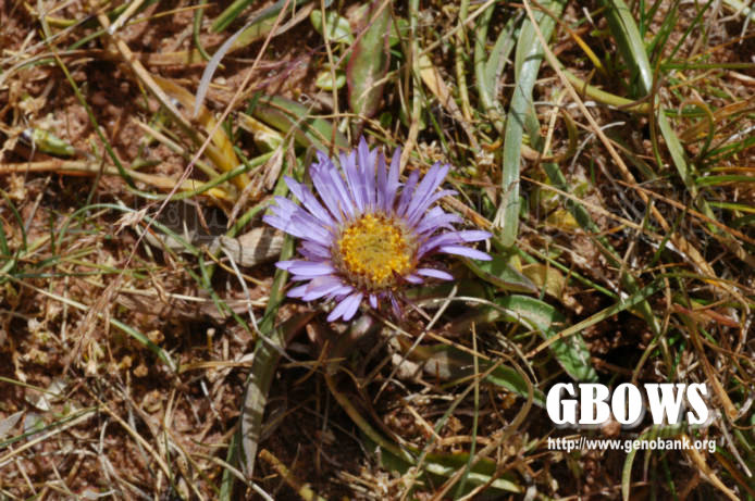 多年生草本,根状茎短,上端有数个簇生的莱菔状向下渐细的块根。茎常单生,高2-15稀达30厘米,纤细,紫色或下部绿色,被开展的毛和紫色腺毛,中部以上或上部常无叶。基部叶密集,在花期生存,倒卵圆形或长圆形,长1-4厘米,宽0.4-0.8稀1.7厘米,基部渐狭成短柄,近全缘,少有细齿;中部叶长圆形或长圆状匙形,顶端钝或渐尖,无柄,上部叶线形;全部叶上面被疏或密的长毛,下面无毛或仅沿脉有毛,有长缘毛,有离基三出脉。头状花序在茎端单生,径2-3.5厘米。总苞半球形,径0.7-1.5厘米;总苞片2-3层,近等长,线状披针形,长5.5-7毫米,宽1-1.5毫米,顶端渐细尖,草质,紫绿色,背面及边缘有紫褐色密毛,背面或基部有长柔毛。舌状花1层,30-60个,管部长1.5毫米,舌片蓝紫色,长10-20毫米,宽1-2毫米,顶端尖;管状花橙黄色,管部长1毫米,裂片长1-2毫米,有黑色或无色腺毛;花柱附片长0.5-0-75毫米。冠毛2层,外层极短,膜片状,白色,内层长4-5毫米,有白色或污白色微糙毛。瘦果长圆形,长达3毫米,被白色疏毛或绢毛。花果期6-8月。