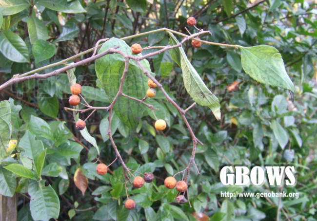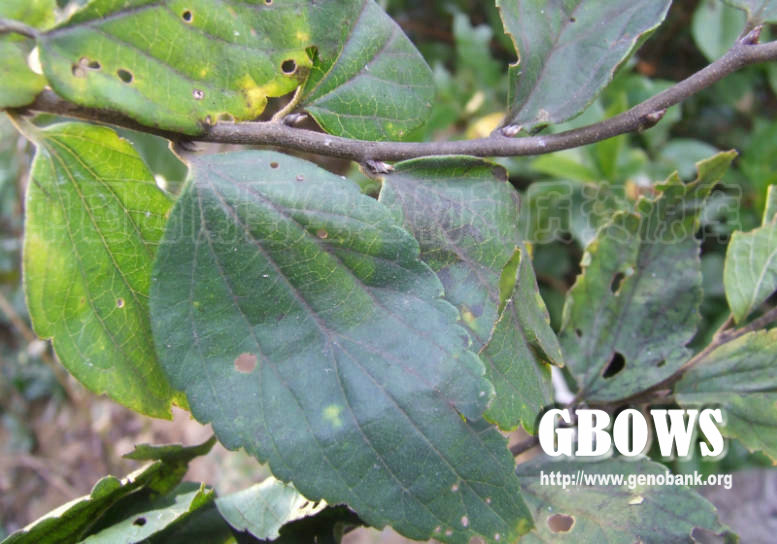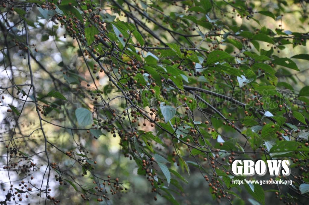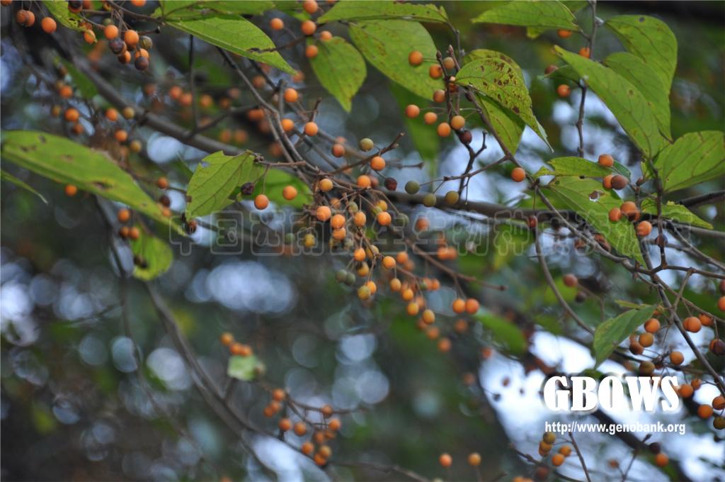 落叶小乔木至乔木,高达18米,树皮暗灰色;当年生小枝幼时黄褐色,密被短柔毛,后渐脱落,至结果时为褐色,有散生皮孔,毛几可脱净;冬芽黑褐色,芽鳞被柔毛,内部鳞片的毛长而密。叶宽卵形、卵形至卵状椭圆形,长 2.5-7厘米,宽2-3.5厘米,基部钝至近圆形,稍偏斜,先端渐尖至尾状渐尖,在中部以上疏具浅齿,薄革质,边稍反卷,上面脉纹多下陷,被毛的情况变异较大,两面被微糙毛,或叶面无毛,仅叶背脉上有毛,或下面除糙毛外还密被柔毛;叶柄长3-6毫米,幼时有毛,老后几脱净。托叶条状披针形,被毛,比较迟落,往往到叶完全长成后才脱落。果序单生叶腋,通常具2果(少有1或3果),由于总梗极短,很像果梗双生于叶腋,总梗连同果梗长1-2厘米,被糙毛;果幼时被疏或密的柔毛,后毛逐渐脱净,黄色至桔红色,近球形,直径约5毫米,核两侧稍压扁,侧面观近圆形,直径约4毫米,具4肋,表面具明显的网孔状。花期 4-5月,果期9-10月。