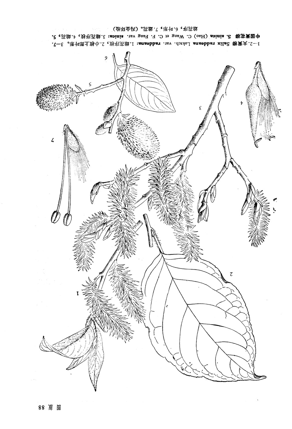 灌木或小乔木。当年生幼枝有柔毛,后无毛,小枝红褐色。叶形多变化,一般为椭圆形、椭圆状披针形、椭圆状菱形、倒卵状椭圆形、稀披针形或卵形、宽卵形,长3.5-6厘米,宽1.5-2.5厘米,先端短渐尖或急尖,基部楔形或圆楔形,幼叶有毛,后无毛,上面暗绿色,下面发白色,多全缘,在萌枝或小枝上部的叶较大,并常有皱纹,下面常被绒毛,边缘有不规整的牙齿;叶柄有毛;托叶半卵形至近肾形。花先叶开放;雄花序无梗,宽椭圆形至近球形,长2-2.5厘米,粗1.8-2厘米,开花顺序,自上往下;雄蕊2,离生,花丝细长,长约6毫米,基部有极疏的柔毛,花药长圆形,黄色;苞片椭圆状卵形或微倒卵状披针形,长约3毫米,深褐色或近黑色,两面被白色长毛;仅1腺,近方形,腹生;雌花序短圆柱形,长2.5-3.5厘米,粗7-9毫米,无梗,基部有2具绒毛的鳞片,子房狭圆锥形,长约3.5毫米,柄长1.2毫米,有毛,花柱短,柱头2裂,苞片椭圆状披针形,长约2.5毫米,深褐色或黑色,两面密被白色长毛;仅1腹腺。蒴果线状圆锥形,长达6毫米,果柄与苞片几等长。花期4月下旬,果期5月下旬。