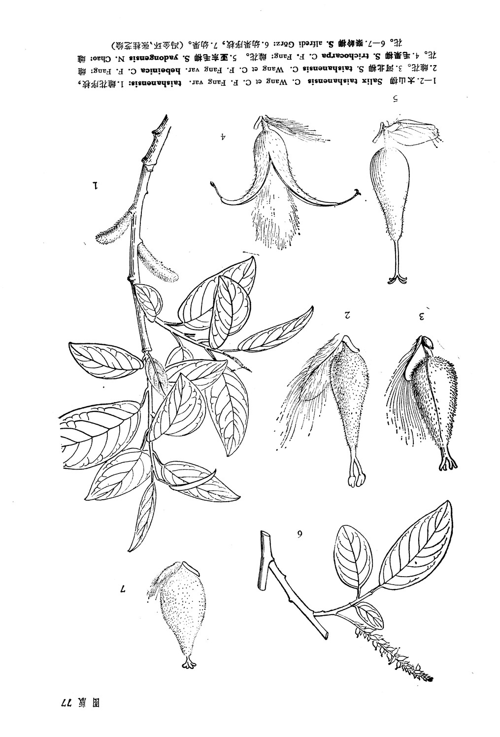 本种与秦岭柳S. alfredi Gorz相近,主要区别为叶基部圆形至微心形;雌花序短,长1-2厘米;子房卵状圆锥形,花柱明显,2深裂,子房柄明显;苞片两面密被长毛。