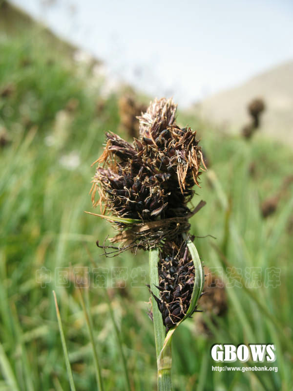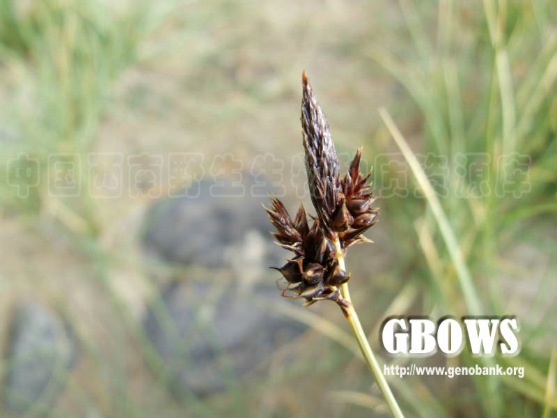 根状茎短,具匍匐茎。秆丛生,高10-25厘米,纤细,三棱形,粗糙,基部具栗色的老叶鞘。叶短于秆,宽1.5-3毫米,平张,边缘粗糙。苞片基部的刚毛状,短于花序,无鞘,上部的鳞片状。小穗2-3 (4) 个,顶生1个雄性,圆柱形,长1.2-2厘米,柄长3-9毫米;侧生小穗雌性,卵形或长圆形,长0.5-1.5厘米,花密生;最下部的具短柄,柄长2-3毫米,上部的无柄。雌花鳞片长圆形或长圆状披针形,顶端稍钝,长1.8-2.5毫米,宽1-1.2毫米,暗紫红色或红棕色,具白色膜质边缘,中脉色淡。果囊稍长于鳞片而较鳞片宽2-3倍,近圆形或倒卵状圆形,平凸状,长2-2.7毫米,宽2.3-2.5毫米,下部淡褐色,上部暗紫色,密生瘤状小突起,脉不明显,顶端具极短的喙,喙口微凹,疏生小刺。小坚果卵形,长约2毫米;花柱基部不膨大,柱头2个。花果期7-8月。