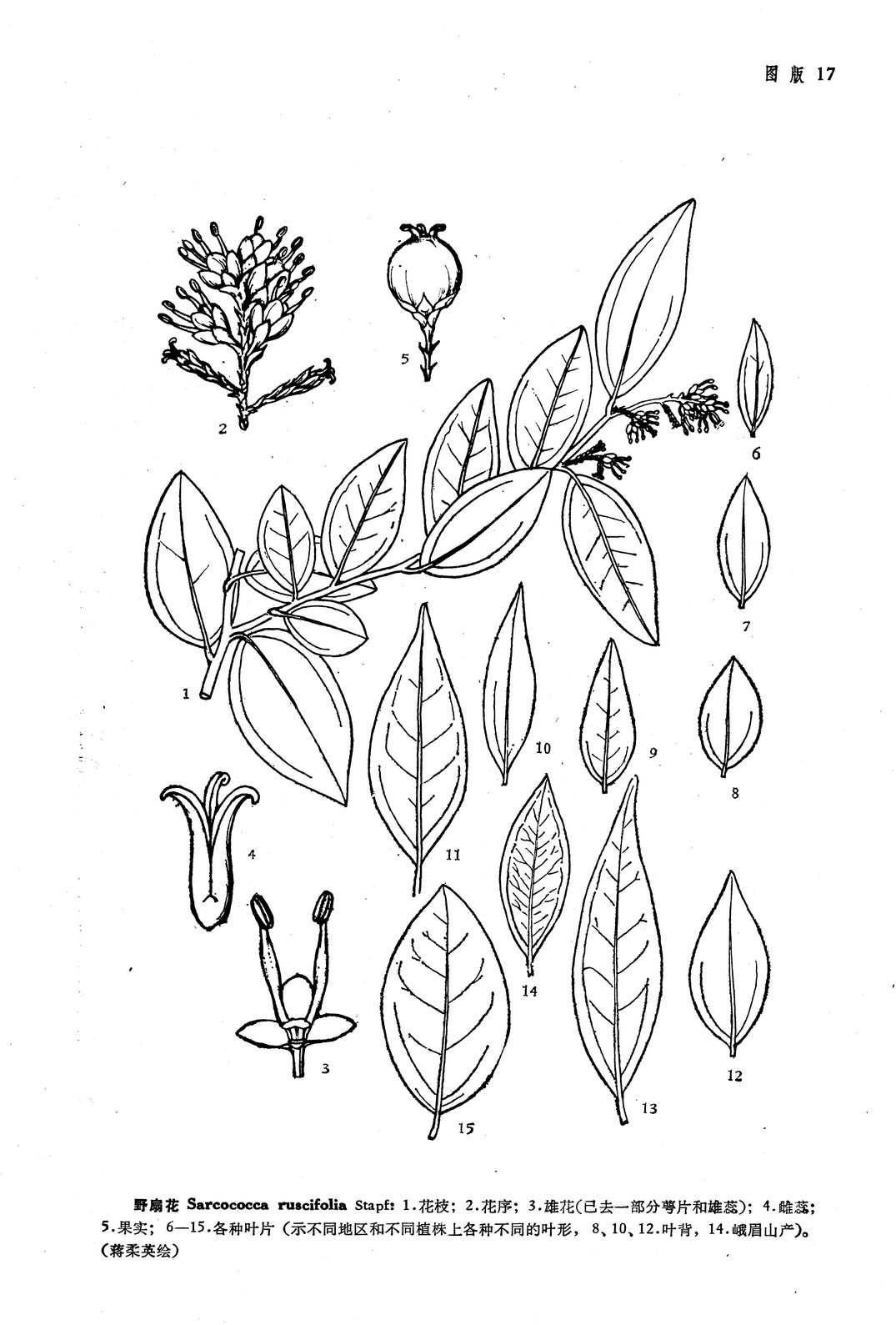 Sarcococca ruscifolia Stapf in Kew Bull. Misc. Inf. 1910. 394; Rehd. et Wils. In Sarg. Pl. Wils. 2: 163. 1914; Hand.-Mazz. Symb. Sin. 7: 235. 1931; J. R. Sealy in Journ. Roy. Hort. Soc. (London) 74: 304. 1949;中国高等植物图鉴2: 631, 图2991. 1972;云南植物志1: 149, 图版36, 10-12. 1977.——S. ruscifolia Stapf var. chinensis (Franch.) Rehd. et Wils. in Sarg. Pl. Wils. 2: 163. 1914; J. R. Sealy in Journ. Roy. Hort. Soc. 74: 304. 1949. syn. nov.——S. saligna (D. Don) Mull.-Arg. var. chinensis Franch. Pl. Delav. 135. 1889. ——S. pauciflora C. Y. Wu ex S. Y. Pao,云南植物志1: 151,图版36, 13-15. 1977, syn. nov.——S. pruniformis auct. non Lindl.: Hemsl. in Journ. Linn. Soc. 26: 418. 1894, quoad pl. sinensem.