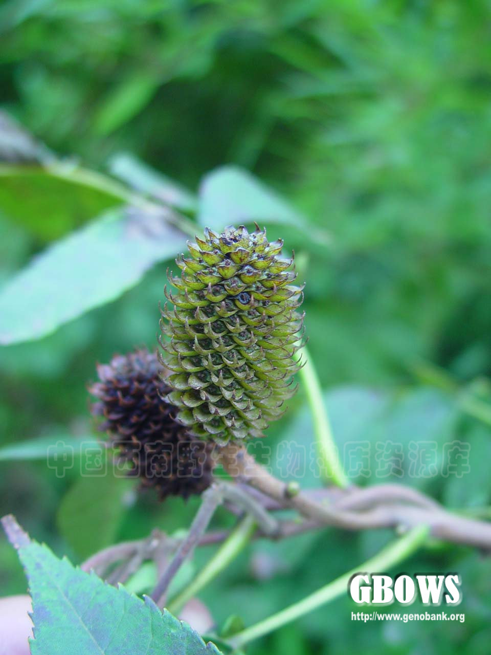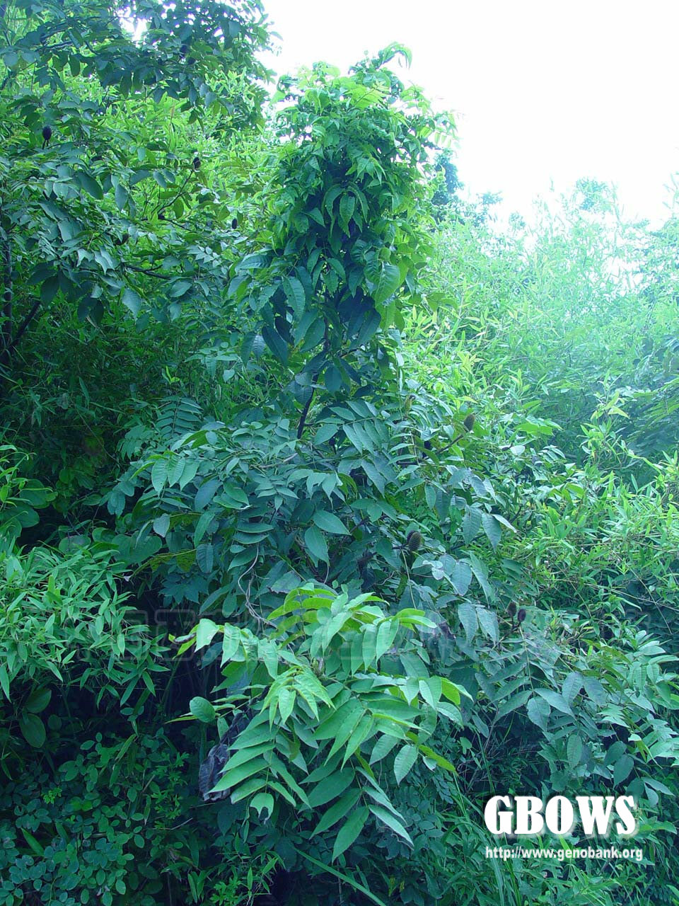皮孔;芽卵形或近球形,芽鳞阔,边缘具细短睫毛;嫩枝被有褐色柔毛,不久即脱落而无毛。叶长约15-30厘米,叶总柄显著短于叶轴,叶总柄及叶轴初时被稀疏的褐色短柔毛,后来脱落而近无毛,具7-23枚小叶;小叶纸质,侧生小叶无叶柄,对生或生于下端者偶尔有互生,卵状披针形至长椭圆状披针形,长4-11厘米,宽1.5-3.5厘米,不等边,上方一侧较下方一侧为阔,基部歪斜,顶端长渐尖,边缘有锯齿,顶生小叶具长约2-3厘米的小叶柄,基部对称,圆形或阔楔形,小叶上面绿色,近无毛或脉上有褐色短柔毛,下面浅绿色,初时脉上有褐色柔毛,后来脱落,或在侧脉腋内、在基部两侧毛不脱落,甚或毛全不脱落,毛的疏密依不同个体及生境而变异较大。两性花序和雄花序在小枝顶端排列成伞房状花序束,直立;两性花序通常1条,着生于中央顶端,长5-10厘米,雌花序位于下部,长1-3厘米,雄花序部分位于上部,有时无雄花序而仅有雌花序;雄花序通常3-8条,位子两性花序下方四周,长4-10厘米。雄花:苞片阔卵形,顶端渐尖而向外弯曲,外面的下部、内面的上部及边缘生短柔毛,长2-3毫米;雄蕊6-8枚,花丝短,稍生细短柔毛,花药阔卵形,黄色。雌花:苞片卵状披针形,顶端长渐尖、硬而不外曲,长2.5-3毫米;花被2,位于子房两侧并贴于子房,顶端与子房分离,背部具翅状的纵向隆起,与子房一同增大。果序球果状,卵状椭圆形至长椭圆状圆柱形,长2.5-5厘米,直径2-3厘米;宿存苞片木质,略具弹性,长7-10毫米;果实小坚果状,背腹压扁状,两侧具狭翅,长4-6毫米,宽3-6毫米。种子卵形,种皮黄褐色,膜质。5-6月开花,7-8月果成熟。