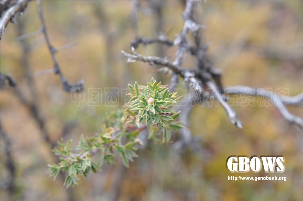 灌木,高1-2米。树皮深褐色;小枝有棱,无毛。托叶三角形,硬化成针刺,长5-7毫米;叶轴脱落或硬化成针刺,针刺长7-15 (25) 毫米;小叶2对,羽状,有时假掌状,上部1对常较下部的为大,厚革质或硬纸质,倒卵形或长圆状倒卵形,长1-3.5厘米,宽5-15毫米,先端圆形或微缺,具刺尖或无刺尖,基部楔形或宽楔形,上面深绿色,下面淡绿色。花单生,花梗长约1厘米,中部有关节;花萼钟状,长12-14毫米,宽6-9毫米,基部偏斜;花冠黄色,常带红色,长2.8-3厘米,旗瓣狭倒卵形,具短瓣柄,翼瓣稍长于旗瓣,瓣柄与瓣片近等长,耳短小,龙骨瓣宽钝;子房无毛。荚果圆筒状,长3-3.5厘米,宽约5毫米。