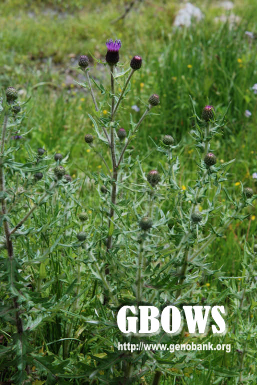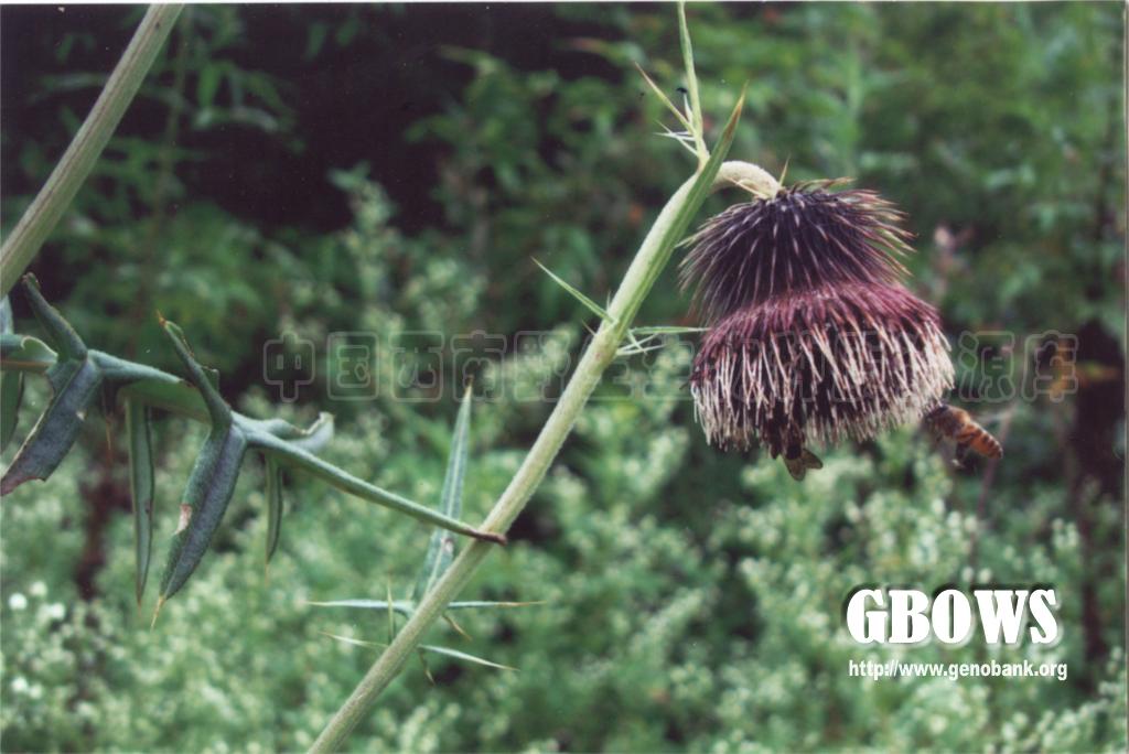 枝,全部茎枝有条棱,或全部茎枝被多细胞长节毛或多细胞长节毛和绒毛兼而有之,但通常中部以上有稠密的绒毛。中部茎叶卵形、披针形、长椭圆形、椭圆形或线状长椭圆形,长5-14厘米,宽1-6厘米,羽状浅裂、半裂或深裂,基部渐狭,有长柄或短柄,或无柄,基部扩大抱茎;侧裂片3-6对,偏斜三角形或偏斜半椭圆形,中部侧裂片较大,全部侧裂片不等大2齿裂;顶裂片长三角形、宽线形或长线形,宽0.5-1.5厘米;全部裂片顶端或齿裂顶端及边缘有针刺,裂片顶端或齿裂顶端针刺较长,长3-6毫米,齿缘及裂片边缘较短,紧贴叶缘或平展;自中部叶向上的叶渐小,与中部茎叶同形并等分裂并具有等样的齿裂,或叶不裂,基部渐狭,有叶柄或无叶柄。全部茎叶两面异色,上面绿色,被多细胞长或短节毛,下面灰白色,被密厚的绒毛。头状花序多数在茎枝顶端排成明显或不明显的伞房花序,少有头状花序单生茎顶而植株仅含1个头状花序的。总苞卵形或卵球形,无毛,直径2-2.5厘米。总苞片7层,覆瓦状排列,向内层逐渐加长,最外层长三角形,宽近1毫米,包括顶端针刺长7毫米,顶端渐尖成针刺,针刺长2毫米,外层三角状披针形或卵状披针形,宽2-3毫米,包括顶端针刺长8-10毫米,顶端有长约1毫米的短针刺,中外层顶端针刺贴伏或开展;内层及最内层披针形或宽线形,长1.2-1.7厘米,宽1.2-3毫米,顶端膜质扩大,红色。全部苞片外面有黑色粘腺。小花粉红色或紫色,长 1.8厘米,檐部长近1厘米,不等5深裂,细管部长8毫米。瘦果偏斜椭圆状倒卵形,长4毫米,宽2毫米,顶偏截形。冠毛浅褐色,多层,基部连合成环,整体脱落。冠毛长羽毛状,长1.5厘米,向顶端渐细。花果期5-11月。