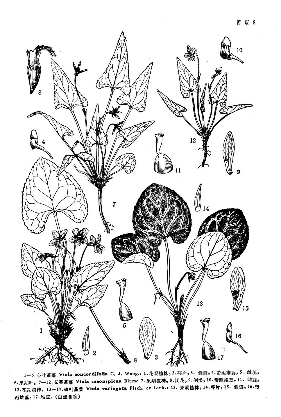 Viola variegata Fisch ex Link, Enum. Hort. Berol. 1: 240. 1821; Ging. in DC. Prodr. 1: 293. 1824; Ledeb. Fl. Ross 1: 244. 1842; Kom. Fl. Mansh. 3: 57. 1905; W. Beck. in Beih. Bot. Centralbl. 34 (2): 246. 1916; Kitag. Lineam. Fl. Mansh. 324. 1939 et Neo-Lineam. Fl. Mansh. 459. 1979; Juz. in Kom. Fl. URSS 15: 414. t. 18. f. 3. t. 20. f. 8. 1949; 竹内亮, 东北师范大学科学研究通报 1: 77. 1955; 东北植物检索表228. 图版72. 图8. 1959; 中国高等植物图鉴2: 913. 图3556. 1972; 东北草本植物志 6: 103, 图版40, 图1. 1977; 秦岭植物志1 (3): 320. 1981; 北京植物志 上册589, 图749. 1984; 汪劲武等, 植物研究8 (2): 128. 1988.——V. variegata Fisch. ex Link var. typical Regel in Bull. Soc. Nat. Mosc. 34: 471. 181. ——V. tenuicornis W. Beck. subsp. primorskajensis W. Beck. in Beih. Bot. Centralbl. 34 (2): 250. 1916. ——V. baicalensis W. Beck. ibid.——V. variegata Fisch. ex Link var. viridis Kitag. in Rep. Inst. Sci. Res. Manch. 1: 264. 1937. ——V. variegata Fisch. ex Link f. viridis (Kitag.) P. Y. Fu et Y. C. Teng, 东北草本植物志 6: 105. 1977; ——V. variegate Fisch. ex Link f. viridis (Kitag.) Kitag. Neo-Lineam. Fl. Mansh. 460. 1979.