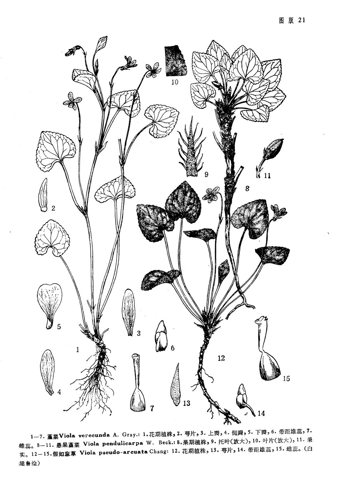 Viola verecunda A. Gray in Mem. Amer. Acad. Nat. Sci. n. ser. 6: 382 1858; Maxim. in Bull. Acad. Sci. St. Petersb. 23: 335. 1877; Forges et Hemsl. Journ. Linn. Soc. Bot. 23: 56. 1886; Palib. in Acta Hort. Petrop. 17: 36. 1899; H. de Boiss. in Bull. Herb Boiss. 1075. 1901; Kom. Fl. Mansh. 3: 71. 1905; Leveil. Fl. Kouy-Tcheou 445. 1914-1915; Juz. in Kom. Fl. URSS 15: 439. t. 18. f. 7. 1949; Lin in Taiwania 1: 277. 1950 Maekawa in Hara Enum. Spermat. Jap. 3: 220. 1954; 竹内亮, 东北师范大学科学研究通报 1: 87. 图版1, 图18. 1955 excl. syn. V. alata Burgersd.东北植物检索表227. 1959; 中国高等植物图鉴2: 918. 图3565. 1972; 东北草本植物志 6: 118. 图版46. 1977; Hsieh Chang-fu in Fl. Taiwan 3: 784. 图版817. 1977; Kitag. Neo-Lineam. Fl. Mansh. 460. 1979; 汪劲武等, 植物研究8 (2): 126. 1980. ——V. alata Burgersd. Subsp. verecunda (A. Gray) W. Beck. in Beih. Bot. Centralbl. 34 (2): 227 1916; Chang in Bull. Fan Mem. Inst. Boil. n. s. 1 (3): 260. 1949; ——V. arcuata Blume var. verecunda (A. Gray) Nakai in Bot. Mag. Tokyo 36: 88. 1922.