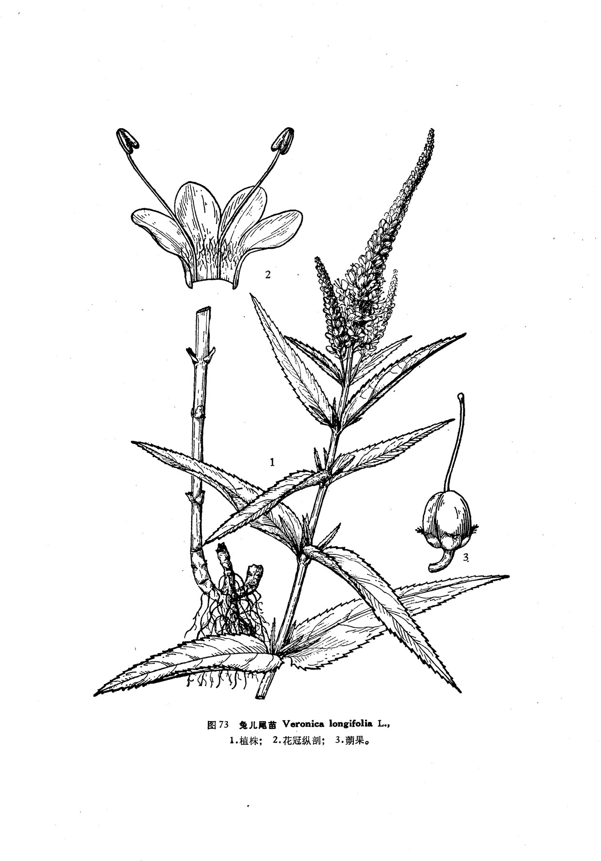 Veronica longifolia L. Sp. Pl. 10, 1753;中国高等植物图鉴, 4: 37.图5487. 1975 ——V. maritima L. Sp. Pl. 10, 1753.——V. pseudolongifolia Printz, Contr. Fl. Asiae, 3: 380, fig. 105, tab. 10 et fig. 2, tab. 11, 1921.——V. exortiva Kitagawa, Journ. Jap. Bot. 26: 17, 1951, p. p. excl. specim. Saghalien. ——Pseudolysimachion longifolium Opiz. Seznam Rostlin Kveteng Ceske. 80, 1852.