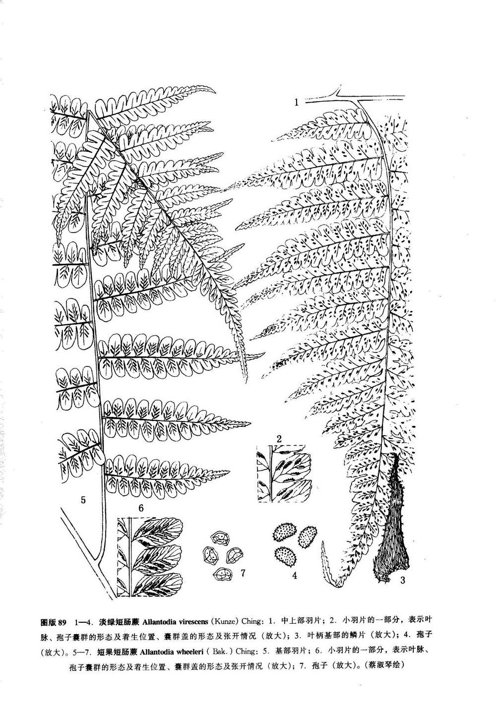 常绿中型林下植物。根状茎横走至横卧,直径约8毫米,黑色,先端密被鳞片;鳞片披针形,长约5毫米,黑褐色,厚膜质,边缘有小齿;叶近生或远生。能育叶长达20-40厘米,直径2-4毫米,基部黑褐色并疏被残存的黑褐色鳞片,向上禾秆色或绿禾秆色,变光滑,上面有浅沟。叶片三角形,长30-60厘米,基部宽25-40厘米,二回羽状-小羽片羽状浅裂至半裂,顶部尾状羽裂渐尖;侧生分离羽片8-10对,互生,稍向上斜展,对称或近对称,下部的三角状阔披针形,有显著的羽柄,顶部长渐尖;基部1对羽片最大,长达35厘米,基部宽达20厘米,柄长约4厘米左右;上部的羽片渐缩小,披针形,羽裂,无柄;小羽片约10对,互生,平展,通常披针形,先端渐尖,少有钝头长圆形,基部较阔而不对称(下侧裂片较大而近心形,上侧裂片较小而平截),有时基部近对称而平截或阔楔形,下部的有短柄,长约10厘米,宽达3厘米;小羽片的裂片大多不超过10对,近平展,密接,长方形或矩圆形,先端近平截或钝圆,边缘有波状小齿或近全缘;叶脉上面不明显,下面可见,羽状,在小羽片的裂片上小脉达6对,通常单一,有时分叉,斜向上。叶干后纸质,通常呈草绿色,下面色较浅,两面均光滑;叶轴和羽轴禾秆色或绿禾秆色,光滑,上面有浅沟。孢子囊群矩圆形,短而直,在小羽片的裂片上达5对,大多单生于小脉中部或近中部的上侧,少见双生;囊群盖成熟时褐色,膜质,从外侧张开,常仅部分残留。孢子肾形或近肾形,周壁薄,表面密被锐尖头的小刺状纹饰。染色体数目2n=123,3倍体。
