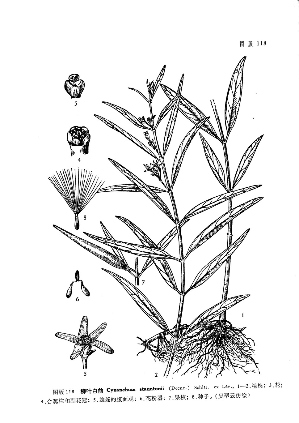 Cynanchum stauntonii (Decne.) Schltr. ex Lev. Mem. Real Acad. Cinenc. Artes Barcelona 12: 4 (Cat. Pl. Kiang-Sou). 1916; 中国高等植物图鉴, 3: 477, 图4907 1974. ——Pentasacme stauntonii Decne. in DC. Prodr. 8: 627. 1844. ——Cynanchum linearifolium Hemsl. in Journ. Linn. Soc. Bot. 26: 107. 1889; Matsuda in Bot. Mag. Tokyo 25: 91. 1911; Steward, Man, Vasc. Pl. Lower Yangtze China 317. 1958. ——Vincetoxicum linearifolium O. Kuntze, Rev. Gen, Pars 1: 424, 1891.——Pentascame brachyantha Hand. -Mazz. in Sitzgsanz. Ak. W. W. 61: 168. 1924.——Cynanchum stauntonii Hand. -Mazz. Symb. Sin. 7: 996. 1936.