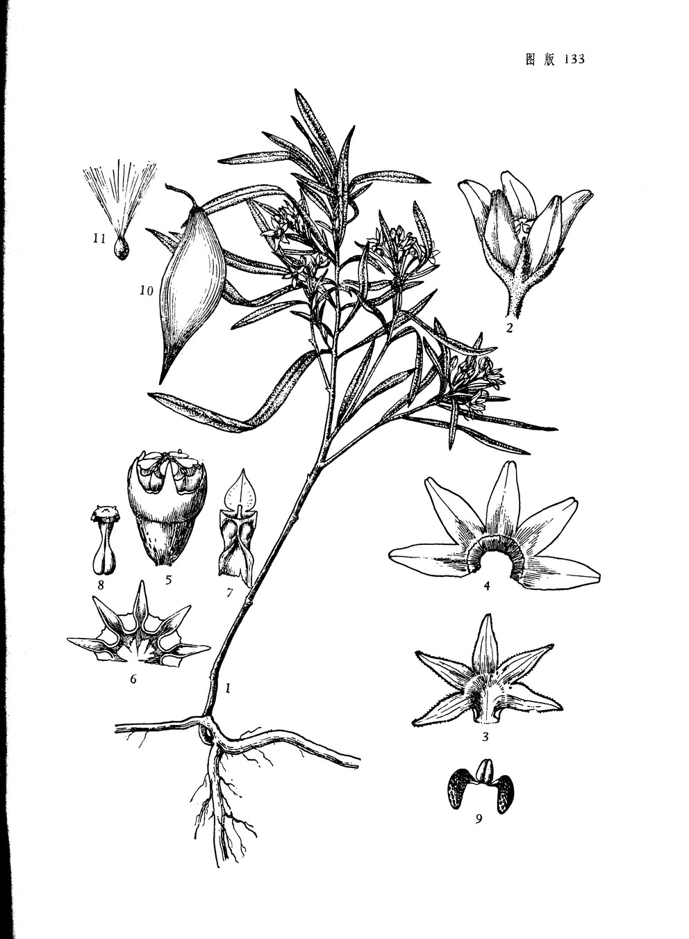 (3)Cynanchum sibiricurn (L.) R. Br.var.gracilentum Nakai et Kitagawa in Rep. First Sci. Exped. Manch. sect. 4, 1: 43, cum fig. 1934.茎自基部分枝多,纤细,有时变紫色;叶极小;花少数。模式标本采自河北承德。