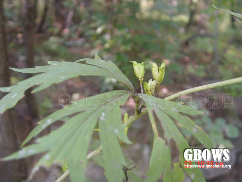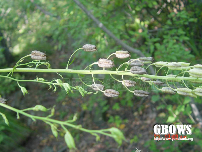 块根圆锥形或胡萝卜形,长2.5-5厘米,粗7-10厘米。茎高(65-)80-150厘米,无毛,等距离生叶,通常分枝。茎下部叶有长柄,在开花时枯萎。茎中部叶有稍长柄或短柄;叶片纸质或近革质,五角形,长9-16厘米,宽10-20厘米,基部心形,三全裂,中央全裂片菱形,渐尖,近羽状分裂,小裂片披针形,侧全裂片斜扇形,不等二深裂,表面疏被短曲毛,背面无毛;叶柄长约为叶片的1/3-2/3,无毛。顶生总状花序具9-22朵花,通常与其下的腋生花序形成圆锥花序;轴和花梗无毛;下部苞片三裂,其他苞片长圆形或线形;下部花梗长1.8-3.5(-5)厘米;小苞片生花梗中部或下部,线形或钻状线形,长3.5-5毫米,宽l毫米;萼片紫蓝色,外面有疏曲柔毛或几无毛,上萼片盔形或高盔形,高1.5-2.5厘米,有短或长喙,下缘长约1.8厘米,侧萼片长1.4-1.6(-2.7)厘米,下萼片长圆形;花瓣无毛,瓣片宽3-4毫米,唇长3-5毫米,距长l-4毫米,向后弯曲或近拳卷;雄蕊无毛,花丝全缘或有2小齿;心皮(4-)5枚,无毛。蓇葖直,长(0.8-)1.2-2厘米;种子长约2.5毫米,扁椭圆球形,沿棱具狭翅,只在一面生横膜翅。7-9月开花。
