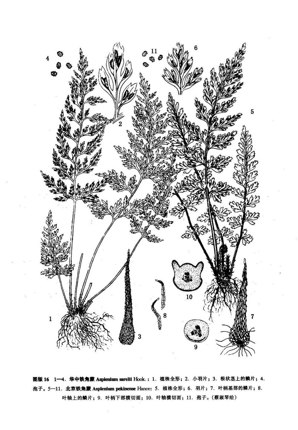 Asplenium pekinense Hance in Seem. Journ. Bot. 5: 262. 1867; Hook. et Bak. Syn. Fil. 213. 1867; Clarke in Trans. Linn. Soc. 2. Bot. 1: 483, pl. 56, f. 2. 1880; Bedd. Handb. Ferns Brit. Ind. 156. 1880; Christ in Bull. Acad. Geogr. Bot. 11: 239. 1902; 傅书遐,中国主要植物图说 (蕨类植物门) 105. 1957; Tagawa, Col. Illustr. Jap. Pterid. 151, pl. 64, f. 342. 1959; Ching et al. in Fl. Tsinling. 2: 122, pl. 31, f. 7-8. 1974; Nakaike, New Fl. Jap. Pterid. 614, f. 614. 1982; Ching et S. H. Wu in Acta Phytotax. Sinica 23 (1): 5. 1985; H. S. Kung in Fl. Sichuan. 6: 372, pl. 116, f. 5-8. 1988. ——Asplenium sepulchrale Hook. et Bak. Syn. Fil. 213. 1867. ——Asplenium abbreviatum Makino in Bot, Mag. Tokyo 13: 12. 1899 et Phan. Pterid. Jap. Icon. Illustr. 2: 63. 1900; Ogata, Icon. Fil. Jap. 1: pl. 7. 1928; DeVol in Notes Bot. Chin. Mus. Heude No. 7. 93. 1945. ——Asplenium sarelli var. pekinense C. Chr. Ind. Fil. 130. 1905; H. Ito, Fil. Jap. Illustr. t. 111. 1944.