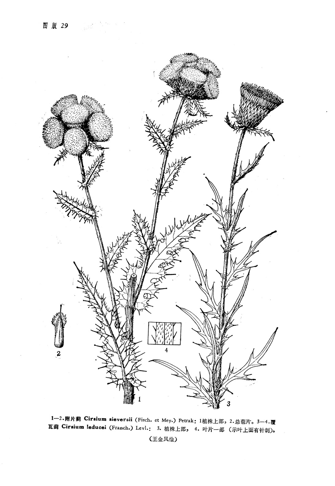 Cirsium leducei (Franch.) Levl., Cat. Pl. Yunnan, 41, 1915; S. Y. Hu in Quart. Journ. Taiwan Mus. 19 (1-2): 57, 1966; Lauener in Not. Roy. Gardn. Edinb. 34: 375, 1976; 石铸, 植物分类学报22(6): 451, 1984——Cnicus leducei Franch. in Journ. de Bot. 11: 23, 1897——Cirsium lineare Sch.-Bip. var. rigidum f. subinregrifolium Petrak in Fedde, Repert. Sp. Nov. 43: 275, 1938——S. Y. Hu in Quart. Journ. Taiwan Mus. 19 (1-2): 60, 1966.
