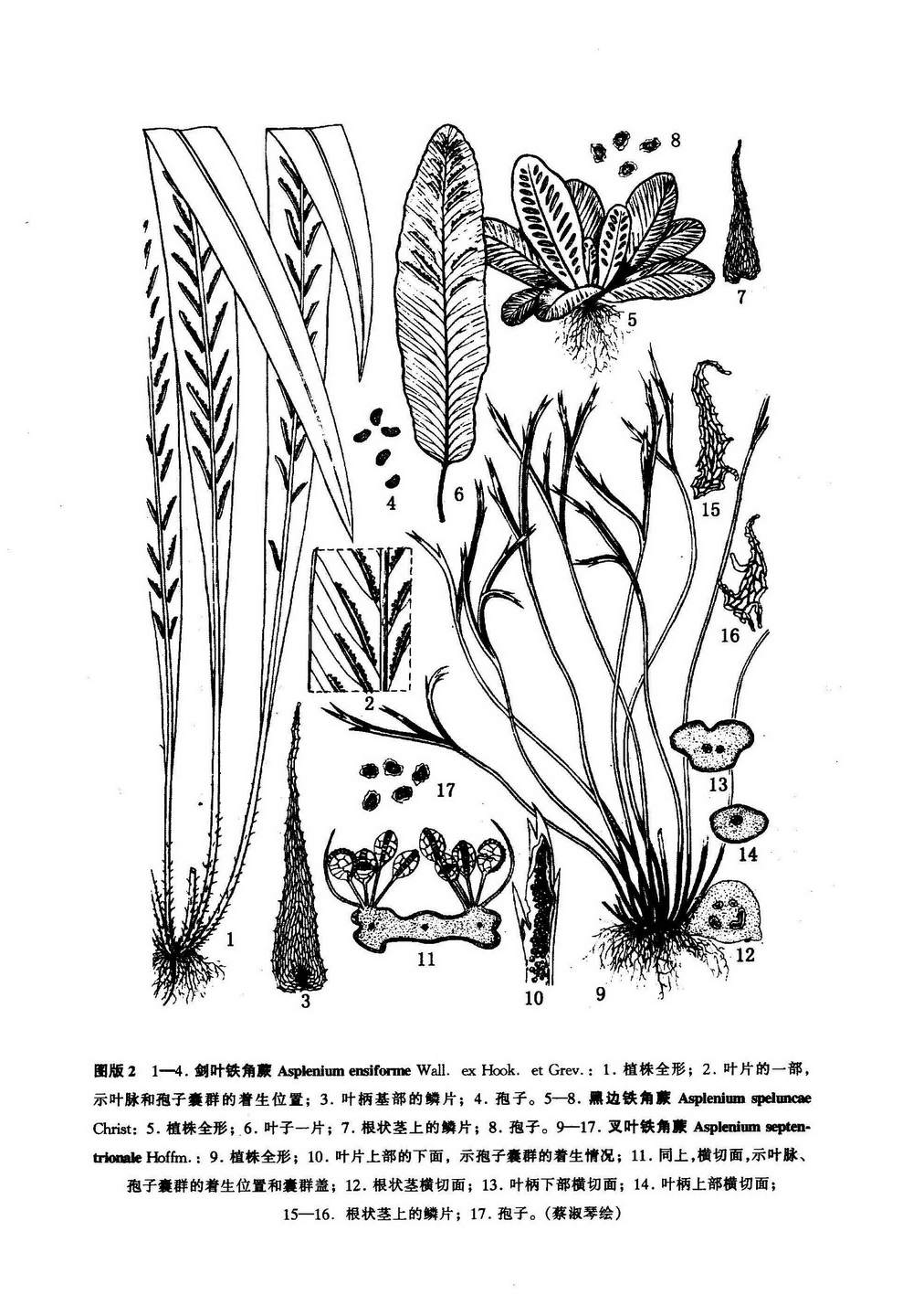 叉裂铁角蕨(秦岭植物志);线叶铁角蕨(台湾植物志)