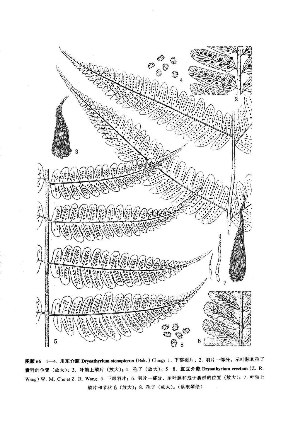 Dryoathyrium stenopteron (Bak.) Ching in Y. L. Chang et al., Sporae Pterid. Sin. f. 70a, 228, t. 44, f. 19, 23. 1976; Z. R. Wang in W. T. Wang, Vase. Pl. Hengduan Mount. 1: 69. 1993; S. F. Wu in Journ. Wuhan Bot. Res. 12 (4): 330. 1994 et in W. T. Wang, Keys Vase. Pl. Wuling Mount. 33. 1995. ——Polypodium stenopteron Bak. in Journ. Bot. 229. 1888 non Bak. 1886. ——Nephrodium stenopteron Diels in Engl. u. Prantl Pflanzenfam. 1 (4): 170. 1899. ——Dryoperis dielsii C. Chr., Ind. Fil. Suppl. 3: 41. 1934. ——Dryoathyrium dielsii Ching in Bull. Fan Mem. Inst. Biol. Bot. 11: 41. 1941.