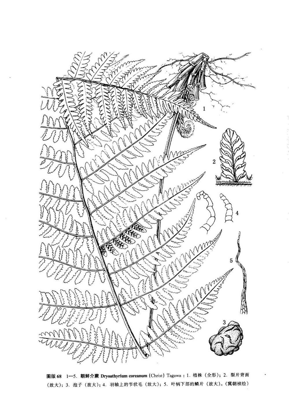 Dryoathyrium coreanum (Christ) Tagawa in Journ. Jap. Bot. 22: 162. 1948; Pic. Ser., Ind. Fil. Suppl. 4: 160. 1965.——Athyrium coreanum Christ in Bull. Herb. Bioss. ser. 2. 2: 827. 1902; C. Chr., Ind. Fil. 140. 1906; Tagawa in Journ. Jap. Bot. 14: 105. 1938 et Col. Ill. Jap. Pterid. 182, excl. t. 290. 1959; Kitagawa, Linneam. Fl. Mansh. 27. 1939; H. Ito in Nakai, Ic. Pl. Asiae Orient. 3: 255, t. 41. 1941 et Fil. Jap. Ill. Pl. 193. 1944; Ohwi, Fl. Jap. Pterid. 115. 1957; 张玉良等, 东北草本植物志1: 39. 1958; Jarrett, Ind. Fil. Suppl. 5: 105. 1985. ——Lunathyrium coreanum (Christ) Ching in Acta Phytotax. Sin. 10: 301. 1965; S. H. Li et J. Z. Wang in S. H. Li, Fl. Liaoning. 1: 59, f. 21. 1988; 贺士元, 北京植物志修订版, 上册: 21. 1992; J. Z. Wang et S. H. Li in P. Y. Fu et al, Clavis Plant. Chin. Bor. -Orient. 2nd ed. 36. 1995. ——Deparia coreana Kato in Journ. Fac. Sci. Univ. Tokyo sect. III. 13 (4): 392. 1984. ——Athyrium decursivum Yabe, Bot. Mag. Tokyo 17: 65. 1903. ——Dryoathyrium henryi sensu S. H. Fu, 中国主要植物图说 蕨类植物门125. 1957, pro parte. ——Athyrium henryi auct. non Diels 1899; Tagawa, Col. Ill. Jap. Pterid. 131. 1959, pro parte, excl. f. 290. ——Lunathyrium henryi sensu Kurata in Namegata et Kurata, Enum. Jap. Pterid. 307, 342. 1961, pro parte; Nakaike, Enum. Pterid. Jap. Fil. 174. 1975 et New Fl. Jap. Pterid. 1982, excl. f. et l. c. Rev. Enl. 1992, pro parte. ——Deparia henryi sensu M. Kato in Bot. Mag. Tokyo 90: 37, 1977, pro parte. ——Lunathyrium ningshenense Ching in Fl. Tsinling. 2: 96, 213, t. 24, f. 3-4. 1974.
