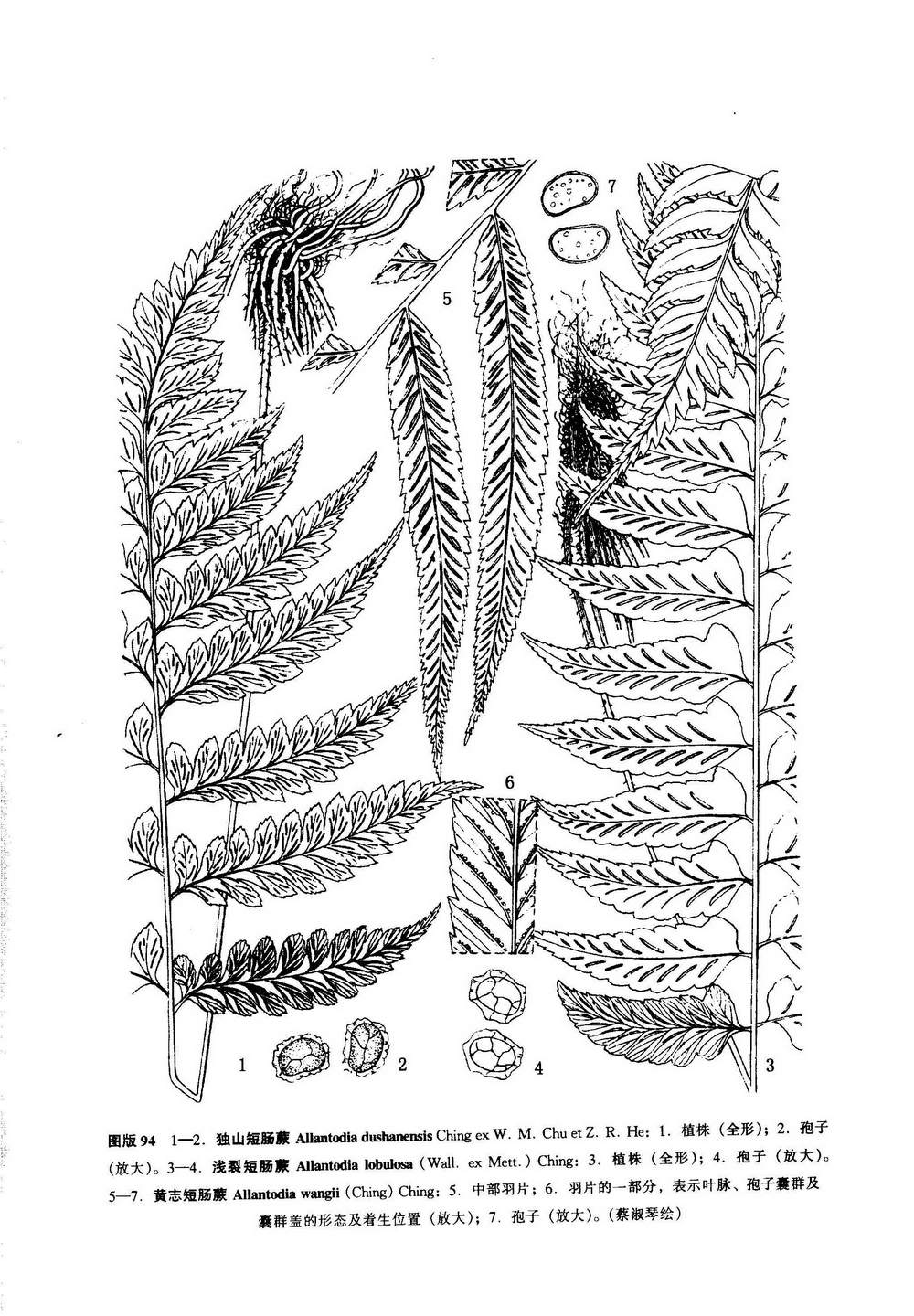 常绿中小型阴湿林下石生植物。根状茎直立,直径5毫米,连同残留的叶柄基部直径达2厘米,褐色,先端密被鳞片;鳞片披针形,长约6毫米,褐色,厚膜质,全缘;叶簇生。能育叶长15-20厘米,直径约3毫米,基部褐色,疏被披针形或卵状披针形的褐色鳞片,向上禾秆色、浅褐禾秆色或绿禾秆色,近光滑,上面有浅纵沟两条;叶片矩圆阔披针形,长25-35厘米,宽7-11厘米,浅羽裂渐尖的顶部以下一回羽状;侧生羽片16-22对,略斜展,下部的近对生,上部的互生,均呈镰状披针形,先端渐尖或长渐尖,向上弯弓,基部不对称,下侧斜形,上侧截形并有三角形或矩圆形的耳状突起,两侧羽状浅裂,柄长约2毫米,两侧有狭翅,中部羽片长5-8厘米,宽1-2厘米,基部羽片略缩短;裂片阔三角形或半圆形,先端具尖锯齿或缺刻状钝锯齿;叶脉上面不明显,下面稍隆起,侧脉三回分叉,在耳状突起上羽状,斜向上。叶为草质,干后灰绿色,两面均光滑;叶轴禾秆色、浅褐禾秆色或绿禾秆色,光滑,顶部有狭翅,上面有浅纵沟。孢子囊群粗线形,稍弯弓,长3-7毫米,每羽片有8-14对,在主脉两侧各排列成一行。在耳中状突起上有2-4对,大多单生于小脉基部上出一脉的上侧中部,极少双生;囊群盖粗线形,膜质,褐色,宿存;孢子周壁宽松而较透明,有少数褶皱,表面还有稀疏而透明的小刺。染色体数目2n=82。