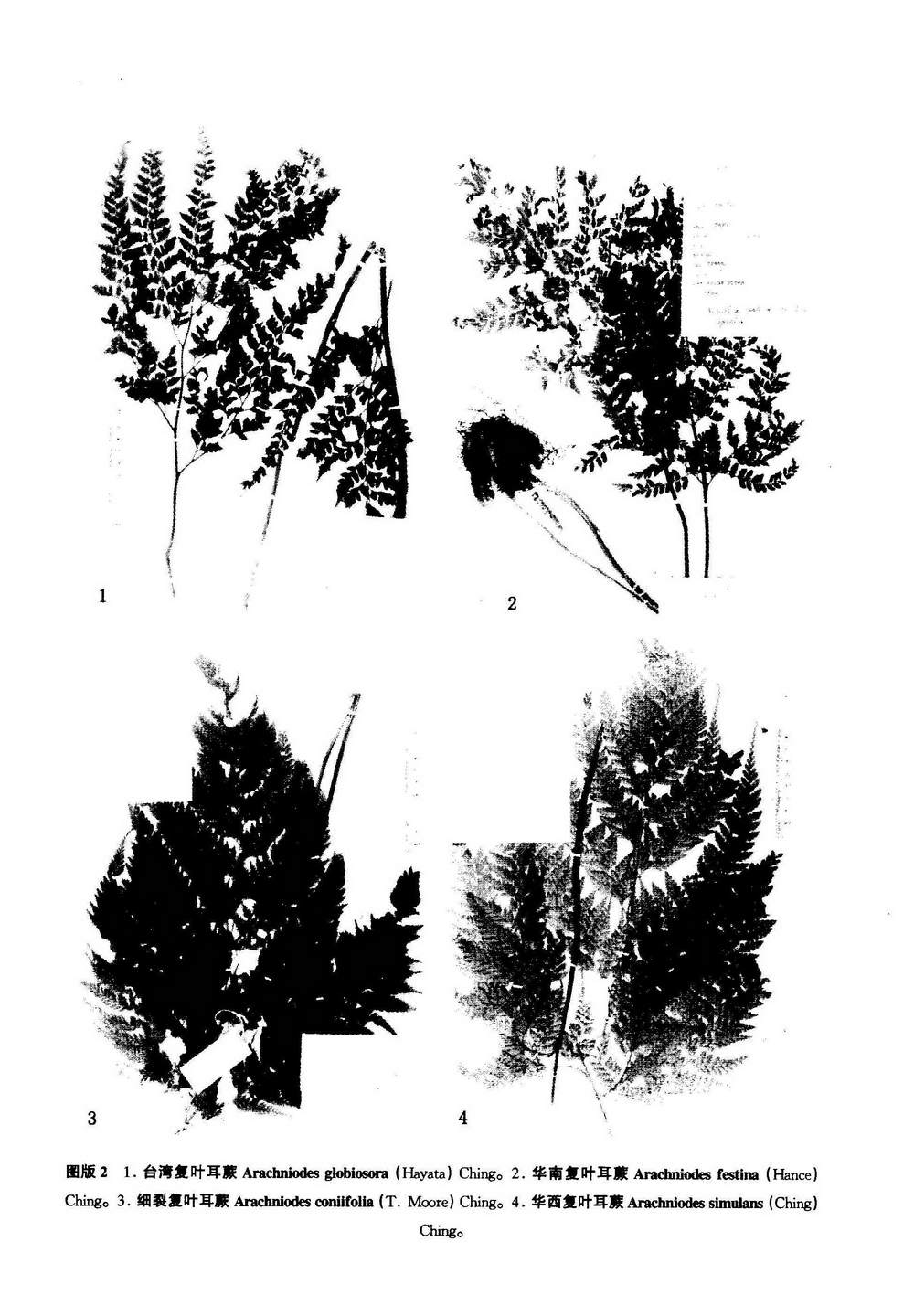 细叶汝蕨(中国主要植物图说?蕨类植物门),台湾两面复叶耳蕨(台湾植物志)。