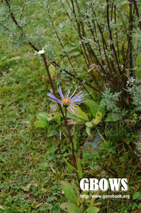 多年生草本,根状茎木质,较粗壮,径3-6毫米,斜升或横卧,有或无分枝,具纤维状根,颈部被纤维状残叶的基部。茎数个或单生,高20-60厘米,基部径2-4毫米,直立,有分枝,或有时不分枝,绿色,基部或全部紫色,具条纹,被较疏的,上部被较密的短硬毛,杂有贴生短毛和头状具柄腺毛,节间长2-4厘米。基部叶密集,莲座状,在花期常枯萎,长圆状倒披针形或倒披针形,长5-15厘米,宽0.7-1.5毫米,全缘或具数个齿,顶端尖或稍钝,基部渐狭基部常紫色的长柄,具3-5脉,两面被疏短硬毛和头状具柄腺毛,下部叶与基部叶同形,具短柄,中部和上部叶无柄,卵状披针形或长圆状披针形,或少有狭披针形,长4-6厘米,宽0.6-2厘米,全缘或少有疏齿,顶端尖或渐尖,基部扩大,半抱茎,最上部叶极小,线形或线状披针形,长1-2厘米,宽0.1-0.2厘米,顶端渐尖。头状花序径3-4厘米,或更大,通常2至数个伞房状排列,或单生于茎枝的顶端;总苞半球形,长8-10毫米,宽15-20厘米,总苞片3层,显明超出花盘,线状披针形,宽约1毫米,顶端渐尖,绿色,上端或全部紫色,外层较短,背面被疏长节毛和密的头状具柄腺毛。外围的雌花舌状,3层,长约为总苞的二倍,舌片开展,紫色,长14-17毫米,宽0.6-1毫米,管部长1.5-2毫米,上部被疏微毛,干时不卷成管,顶端全缘;中央的两性花管状,黄色,长4-4.5毫米,管部1-1.5毫米,檐部窄漏斗状,上部被疏微毛,裂片短三角形,无毛;花药伸出花冠;瘦果长圆形,长2毫米,宽约1毫米,扁压,背面具1肋,被疏短毛;冠毛2层,污白色或淡褐色,刚毛状,外层极短,内层长4毫米。花期7-9月。