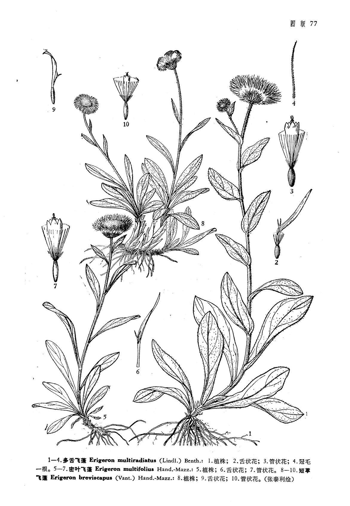此种的狭叶类型在体态上与展苞飞蓬 E. patentisquarnus F. J. Jeffr. 十分相似, 但以具有较大的头状花序,舌片较宽而平展,干时不内卷;管状花花冠的裂片黄色而无毛,与后者不同。